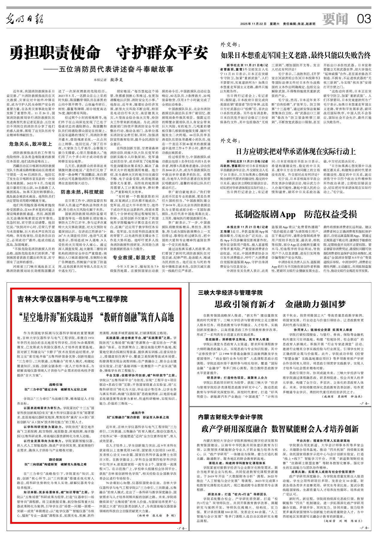 11月22日,《光明日报》要闻版以“‘星空地井海’拓实践边界 ‘教研育创融’筑育人高地”为题,关注报道足交-国产足交